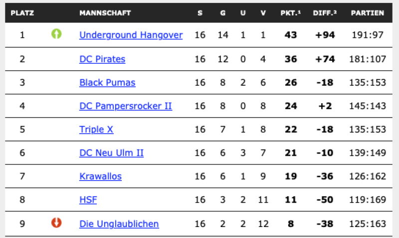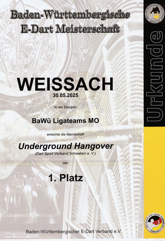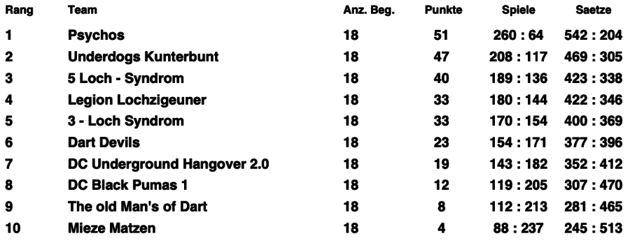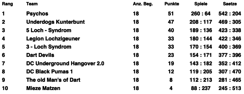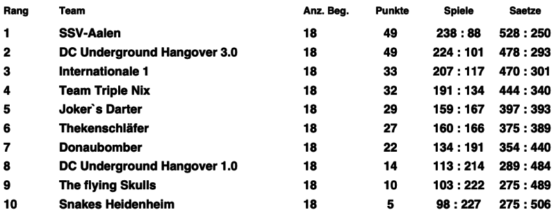 Der DC Underground Hangover e.V. stellte 3 Teams a 4 Leute für den Teamliga 501 M.O. zudem stellten wir 6 Doppelparungen.