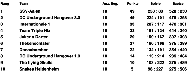 Trozdem ein Toller Erfol, Platz 2 bei den Ligateams 501 Masterout.